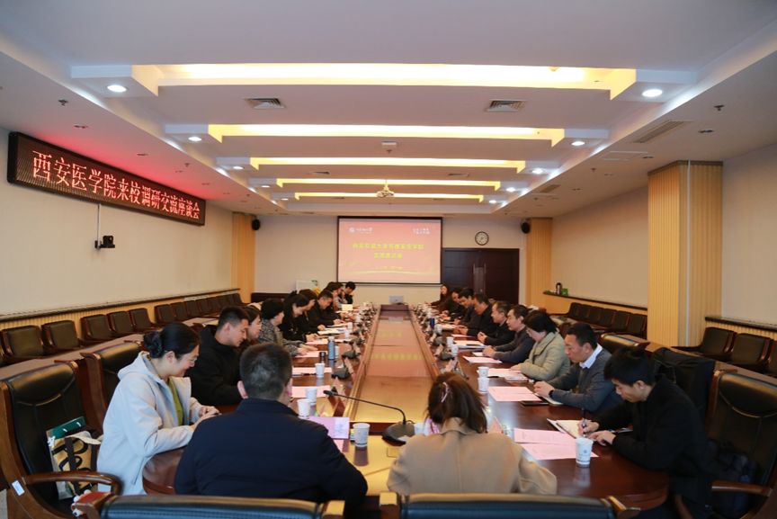 11月21日下午,西安医学院副校长和新盈一行来我校调研交流。调研交流座谈会在我校鄠邑校区第二会议室召开,校党委副书记程永清出席并主持座谈会。