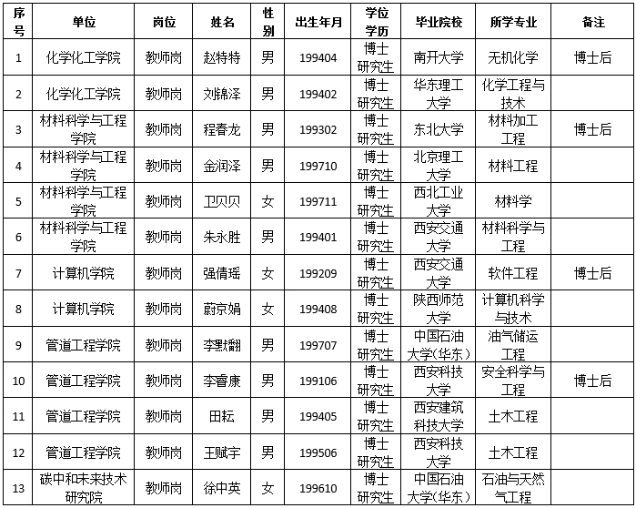 西安石油大学人事处(高层次人才引进办公室)
